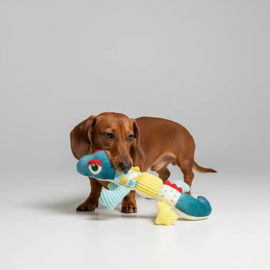 AURORA is a luxury plush dog toy that combines style, durability, and multi-sensory fun. Its crinkly feet, built-in squeaker, and mixed-material body keep dogs engaged in different ways, while the soft plush texture makes it perfect for cuddles and gentle play.
