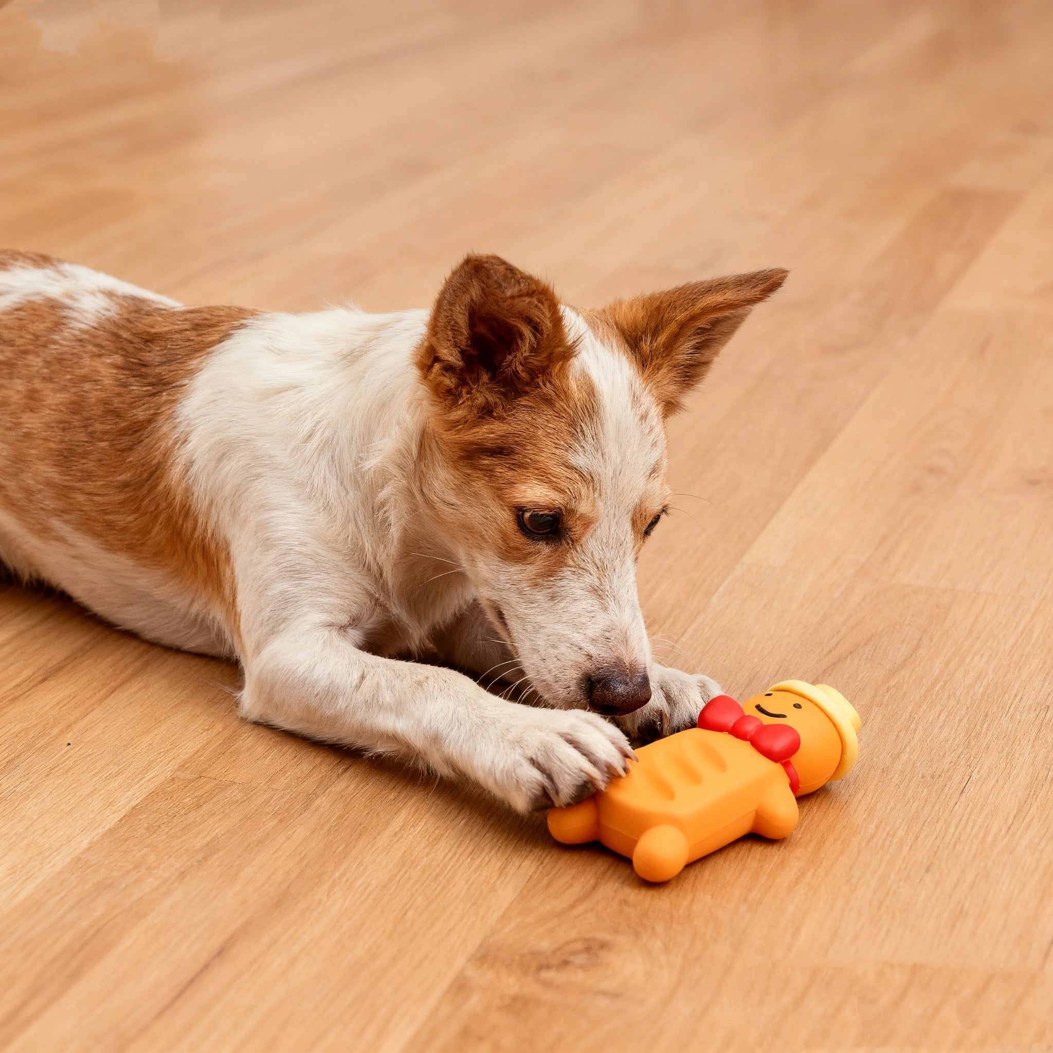 GINGIE is a small latex dog toy designed for quiet, gentle play and cuddles. Its soft yet durable latex is chew-friendly, and the subtle squeaker keeps dogs engaged without overwhelming sound.