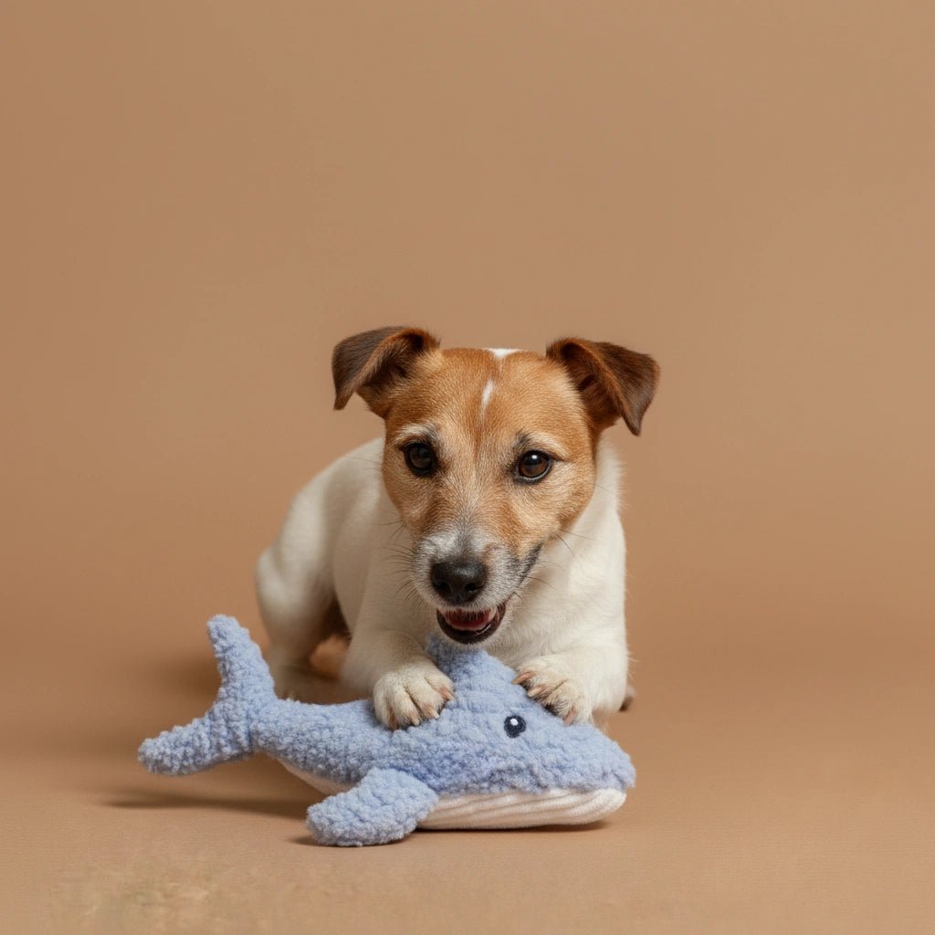 Don’t be fooled by the grin — JAWSIE is a durable plush dog toy made for pups who love to test their toys. With a reinforced fiber belly panel, it holds up better than the average plush while still being soft enough to hug. A built-in squeaker adds excitement and keeps playtime lively.